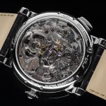 Cartier also combines their minute repeater in the Rotonde de Cartier with another complication, in this case a flying tourbillon. With the hammers prominently visible on the dial side, it leaves little to the imagination with what complication this watch is fitted. The blue guilloche dial adds further to the captivating qualities of this watch.The back of the watch further reveals how complicated it is to create such a watch, giving you an insight into the mesmerizing inner workings of this grande complication!