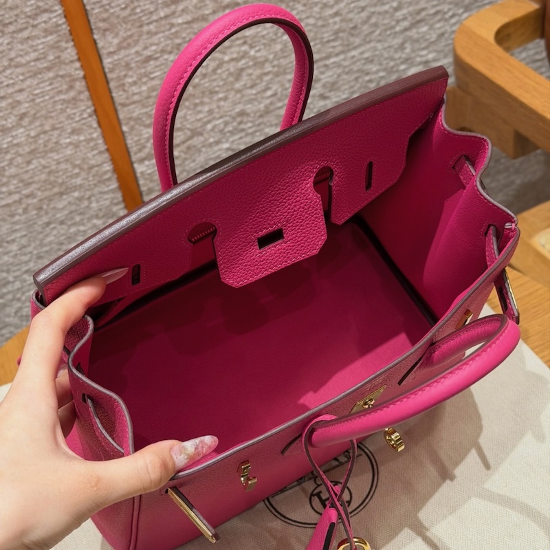 Reviews Over Hermes Replica Handbag Store 25CM Clemence Leather Fuchsia GHW
