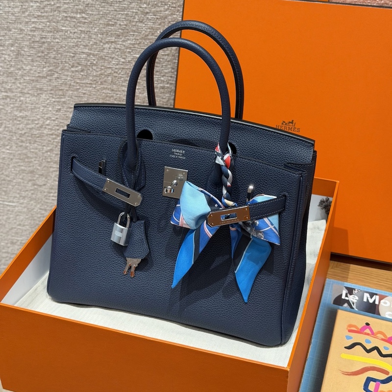 Hermes Replica Handbag Store 30 in Blue Saphir Togo Leather PHW