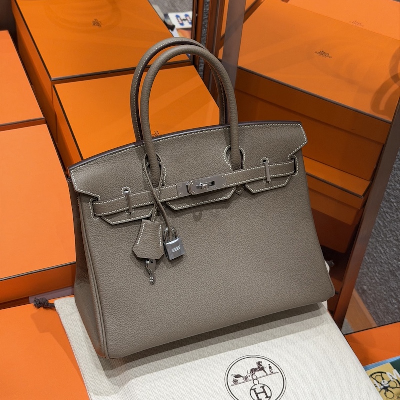 Hermes Replica Handbag Store 30 in Etoupe Togo Leather PHW