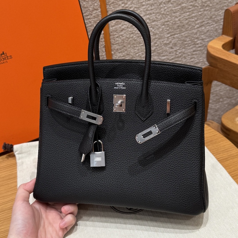 Reviews Over Hermes Replica Handbag Store 25CM Clemence Leather Black PHW