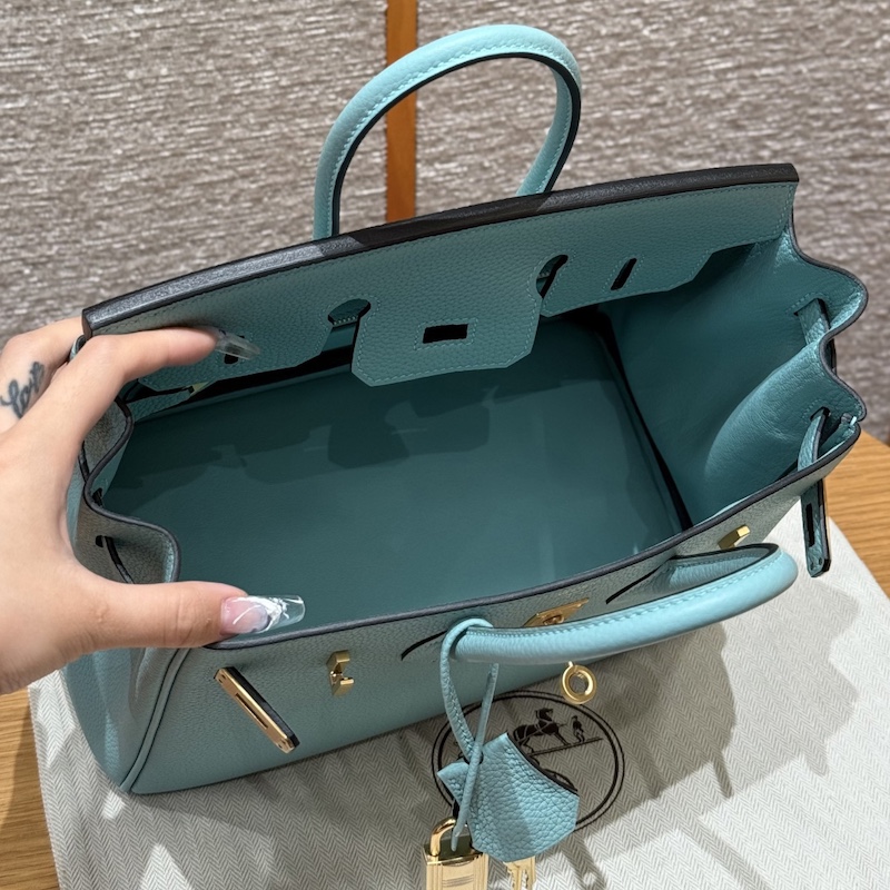 Reviews Over Hermes Replica Handbag Store 25CM Clemence Leather Blue Atoll GHW