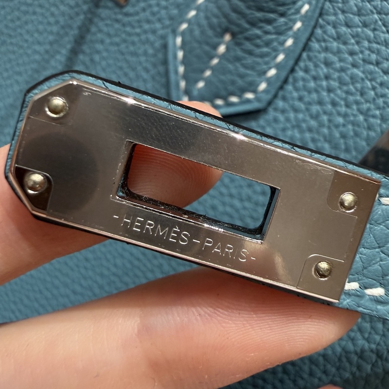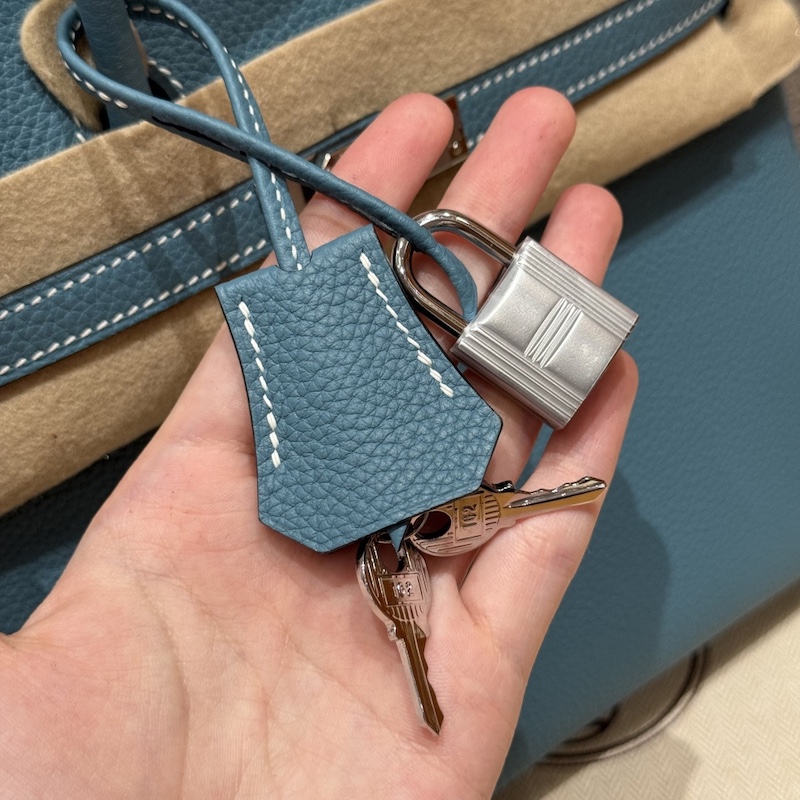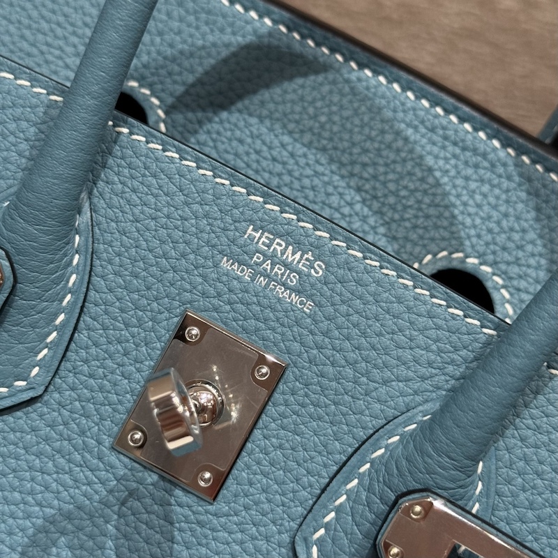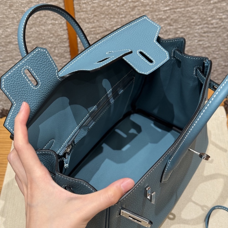 Reviews Over Hermes Replica Handbag Store 25CM Clemence Leather Blue Jean