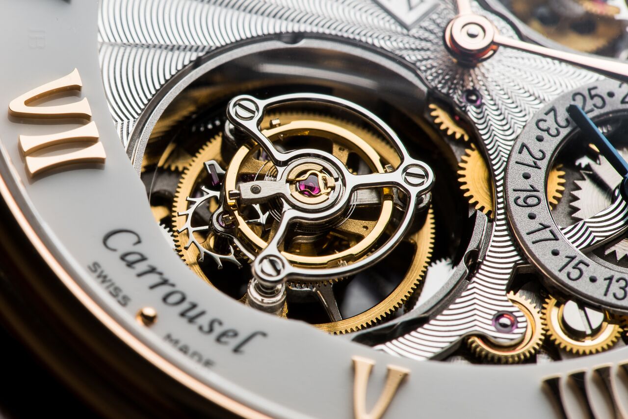 Both were developed with a single goal in mind: eliminating the influence of gravity on the precision of the movement. While a tourbillon is known to most watch collectsors and connoisseurs, the Carrousel is not. It is one of those innovations that seemed to have been forgotten. To the untrained eye, the carrousel looks quite similar to the tourbillon. The major difference is that the carrousel uses two connections to the movement: one to power the escapement, the other to power the cage around it, while the tourbillon does both with a single connection. Neither one of these solutions is better than the other one, as they both accomplish the same.