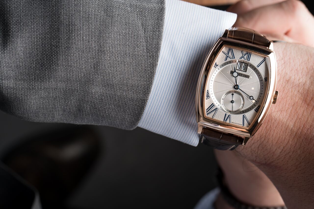 Another great example in which the date function is perfectly integrated into a classic watch is the Breguet Héritage 5410. They opted for a big date, positioned at twelve o’clock. It complements the curved tonneau case perfectly and balances the dial nicely by being placed opposite of the sub seconds dial.