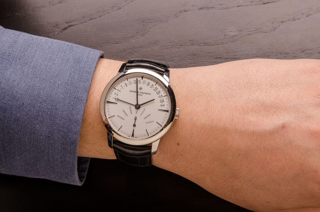 Incorporating a date function on a classic wrist watch like Vacheron Constantin’s Patrimony is not an easy task. By utilizing a retrograde hand, the date remains not only easy to read but is also perfectly integrated into the “less is more” style of this watch. Vacheron Constantin was even able to include a day function in a similar style, creating true functionality in an understated Haute Horlogerie package!
