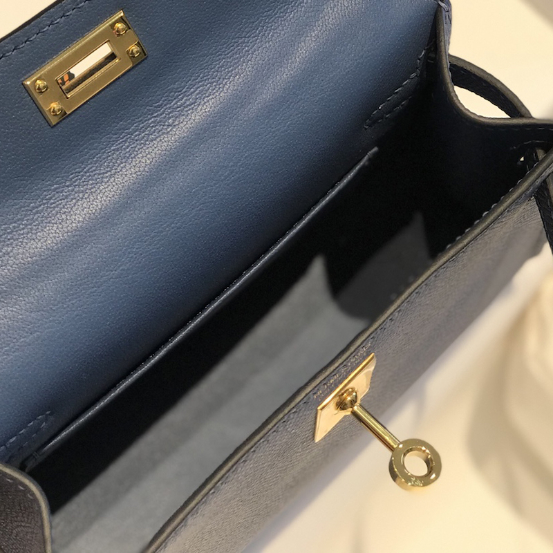 Hermes Kelly Mini II Bag 19cm In Bleu Brighton Epsom Leather