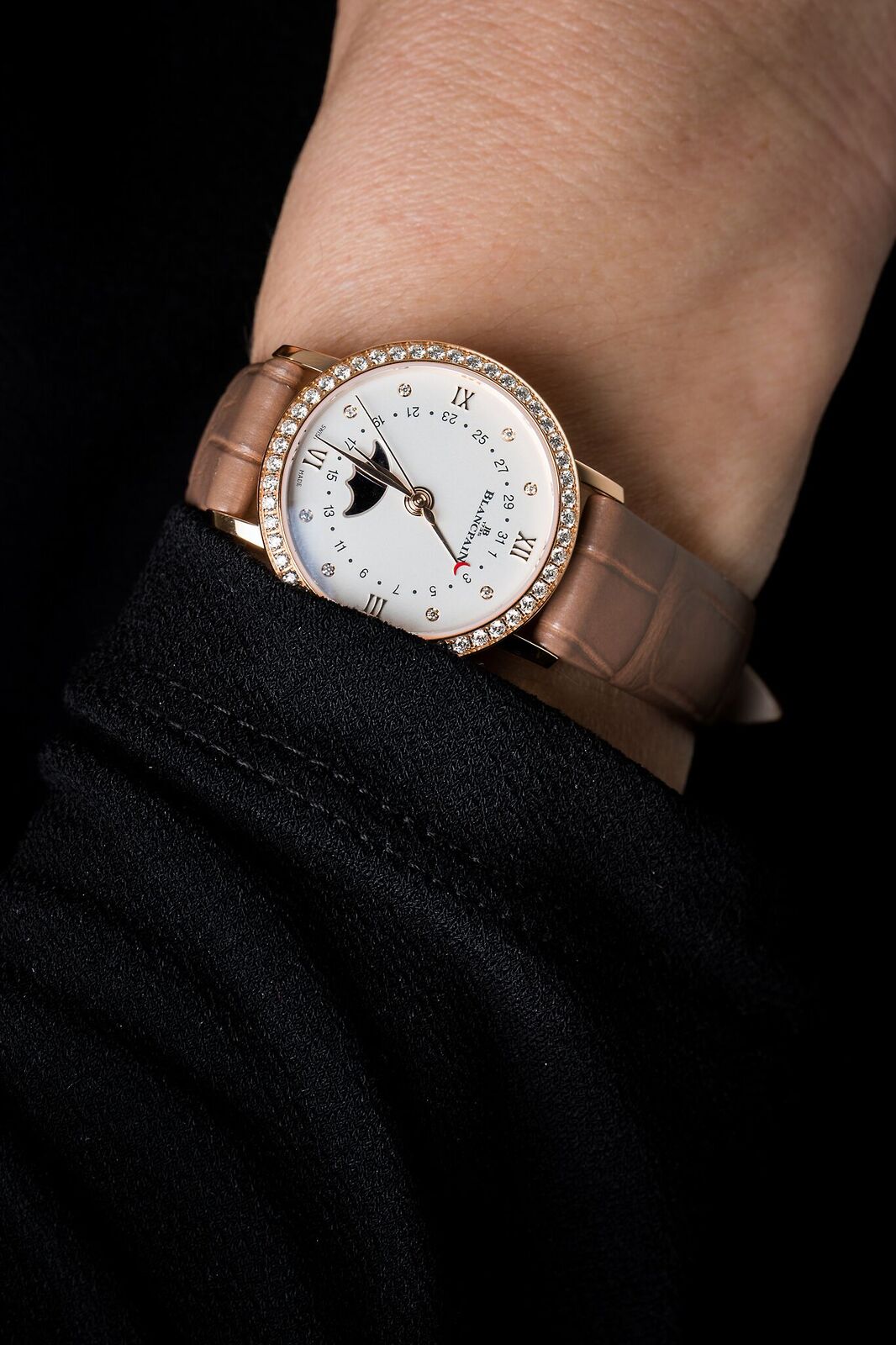 Breguet is of course known for the Reine de Naples when comes to ladies watches, but the new Tradition Dame shows that mechanical excellence and feminine elegance can go perfectly together. Compared to the men’s model you see once more a focus on the details, such as the diamond setting on the case, the mother of pearl dial and the engraved mainspring barrel. This sense of elegance can also be found in the Blancpain Villeret Quantième à Phase de Lune, where a manufacture movement with a silicon balance spring sets the pace for a classical moon phase watch. The moon even features a feminine face, surrounded by an opaline dial set with eight diamond hour markers.