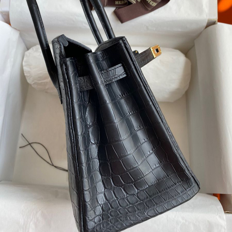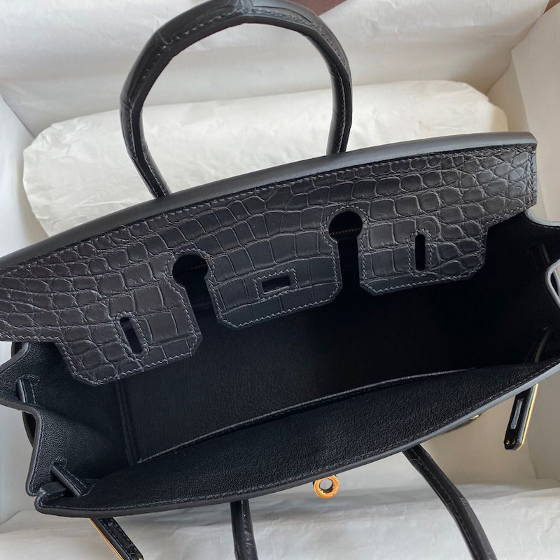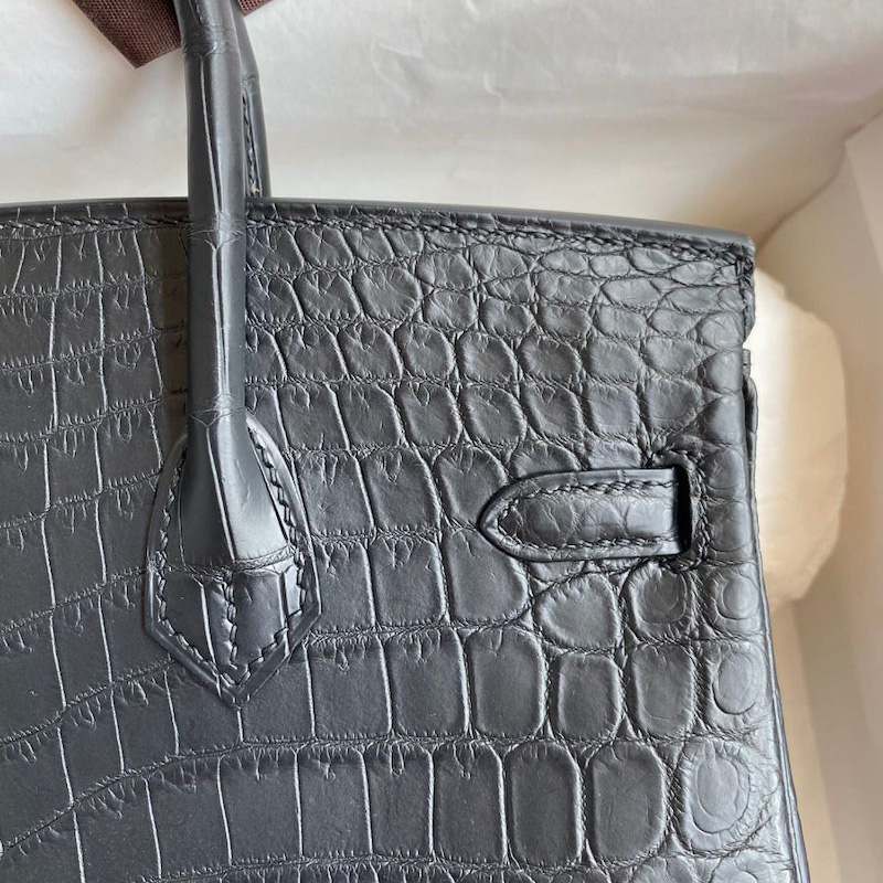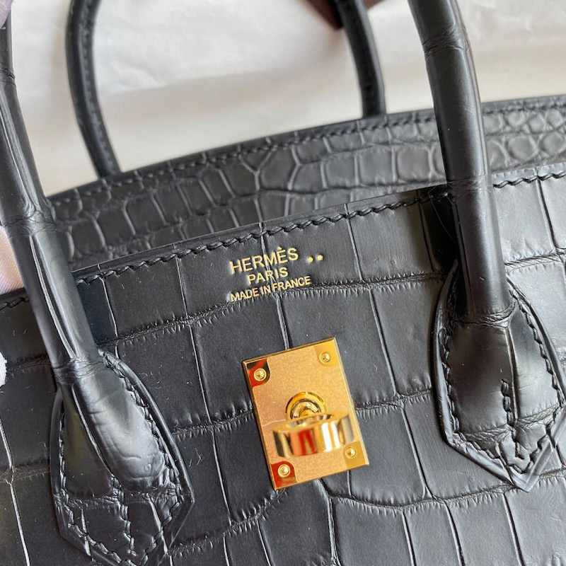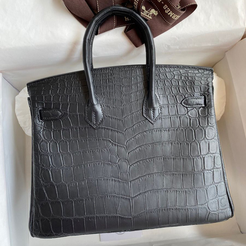 Hermes Replica Handbag Store 25 Handmade Bag In Black Crocodile Niloticus Matte Skin
