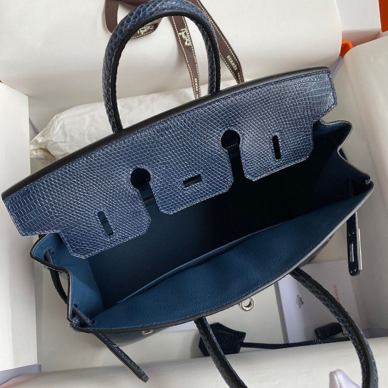 Hermes Replica Handbag Store 25 Retourne Handmade Bag In Blue Saphir Lizard Leather