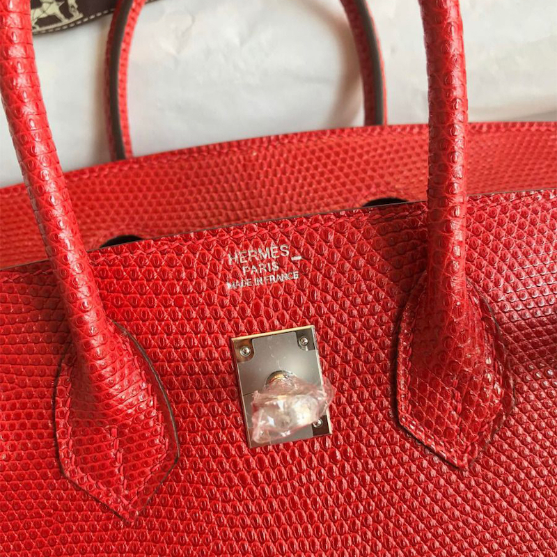 Reviews Over Hermes Replica Handbag Store 25 Retourne Handmade Bag In Red Lizard Leather