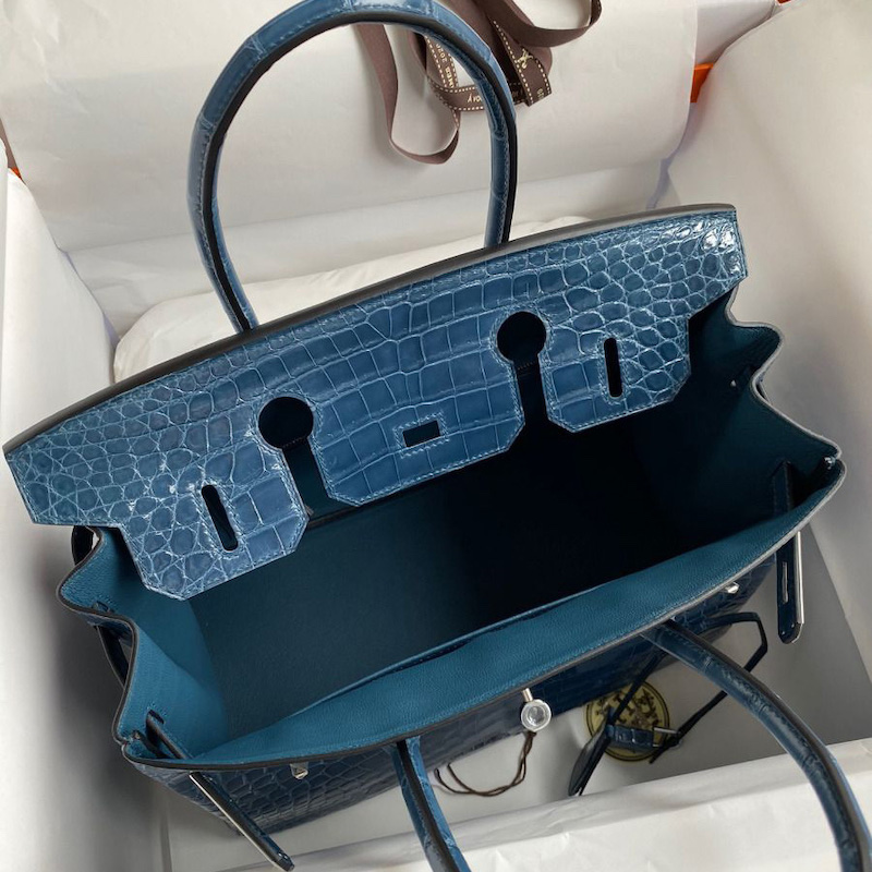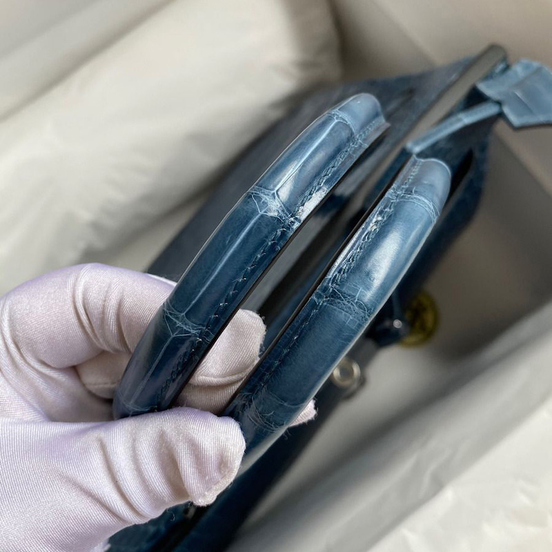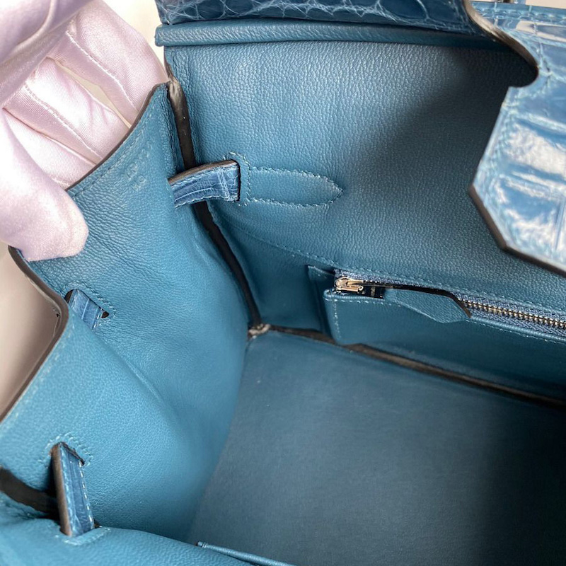 Hermes Replica Handbag Store 30 Handmade Bag In Blue Tempete Crocodile Niloticus Shiny Skin