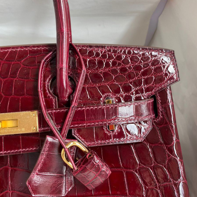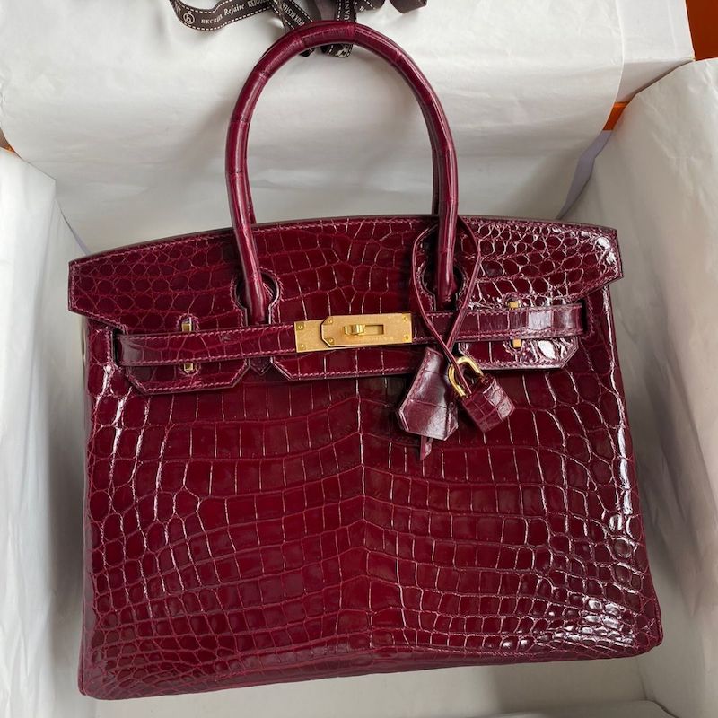 Hermes Replica Handbag Store 30 Handmade Bag In Bordeaux Crocodile Niloticus Shiny Skin