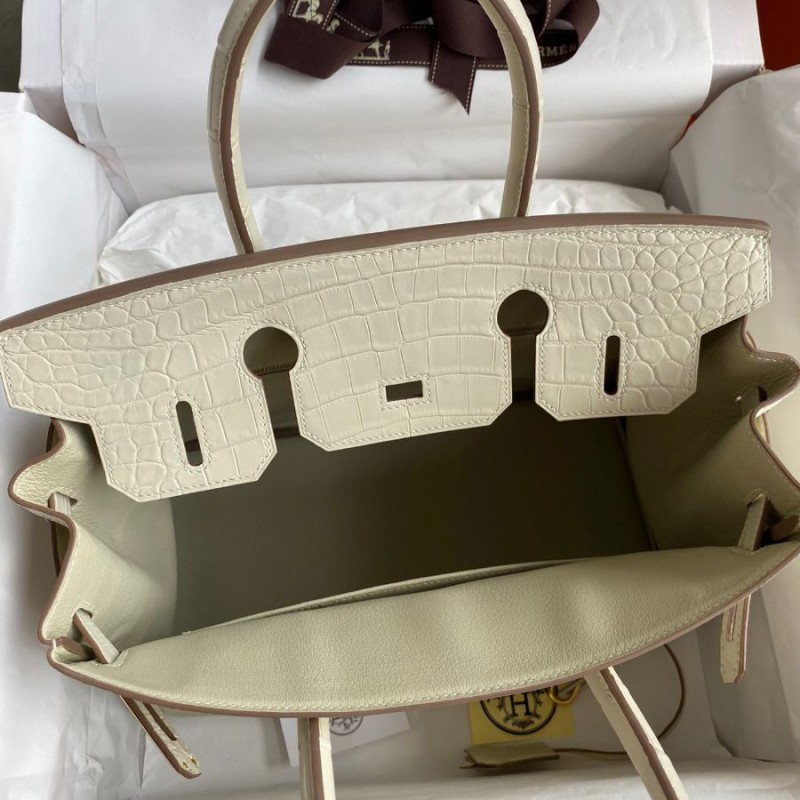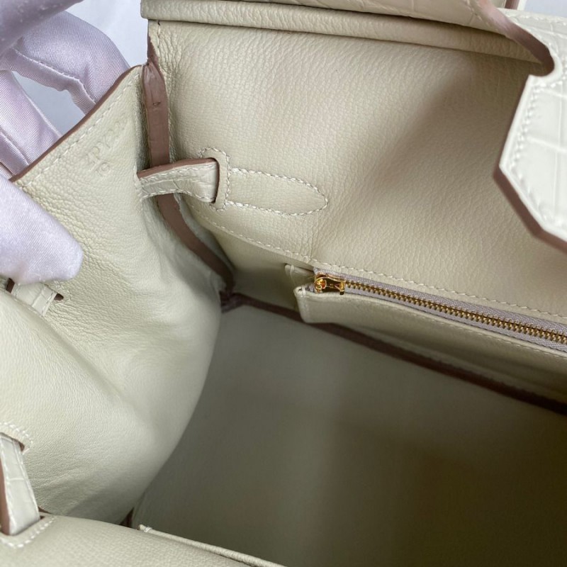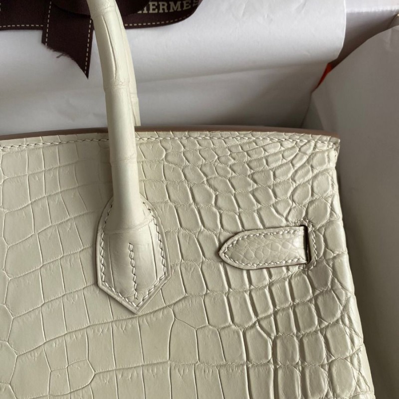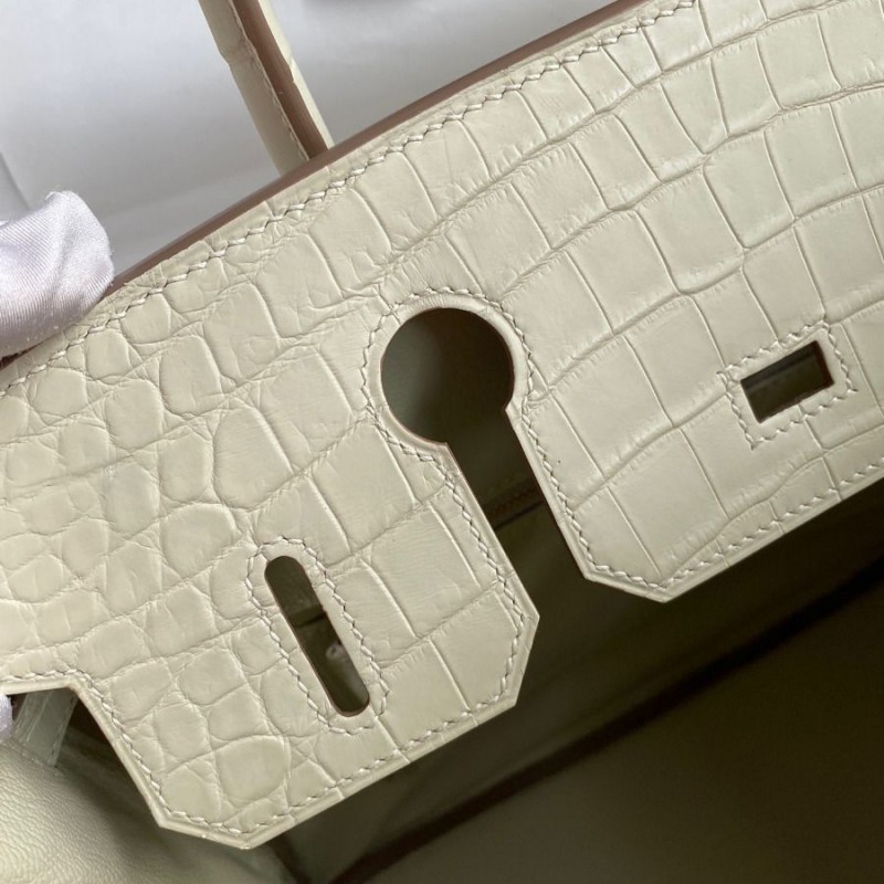 Hermes Replica Handbag Store 30 Handmade Bag In Craie Crocodile Niloticus Matte Skin