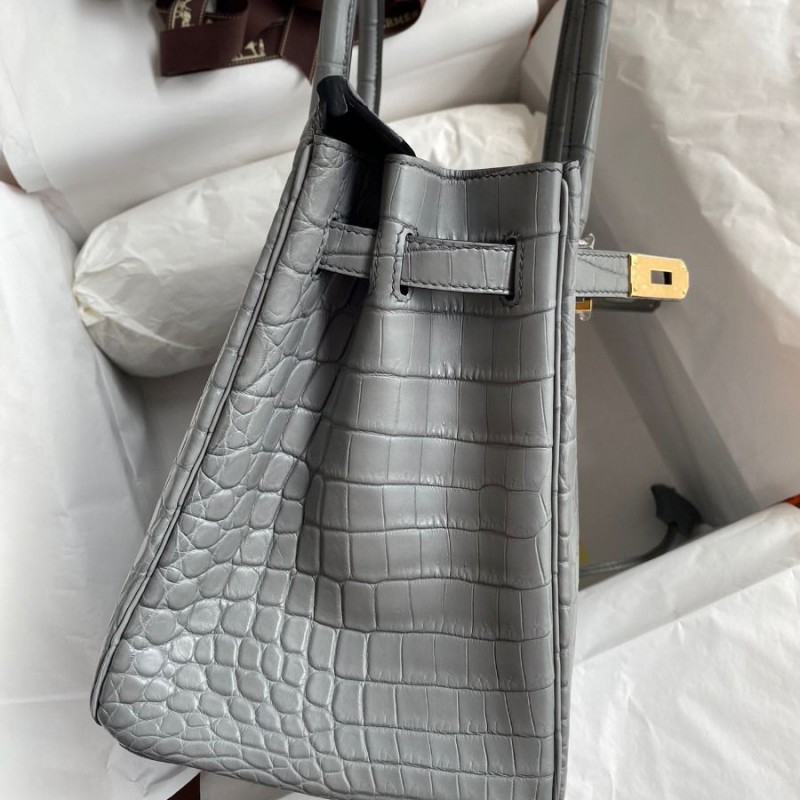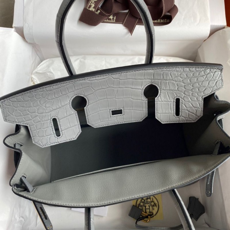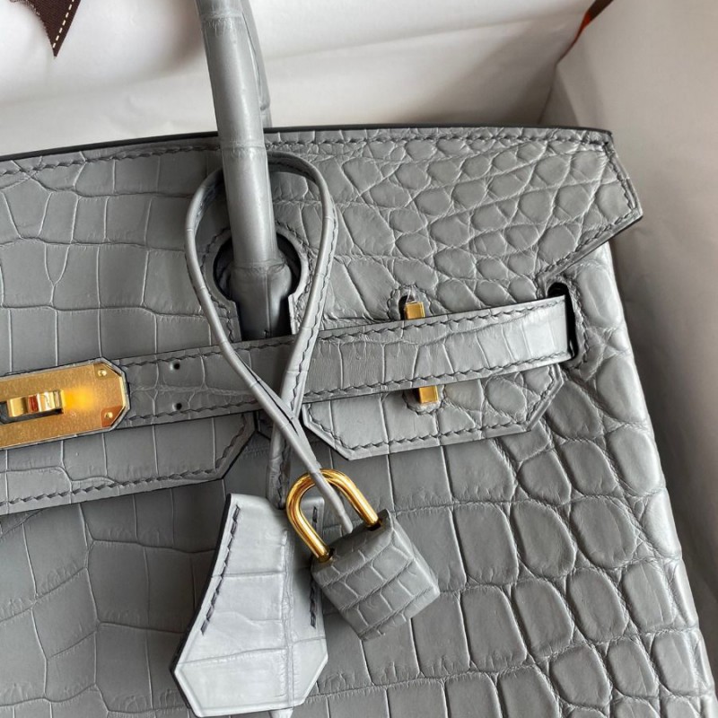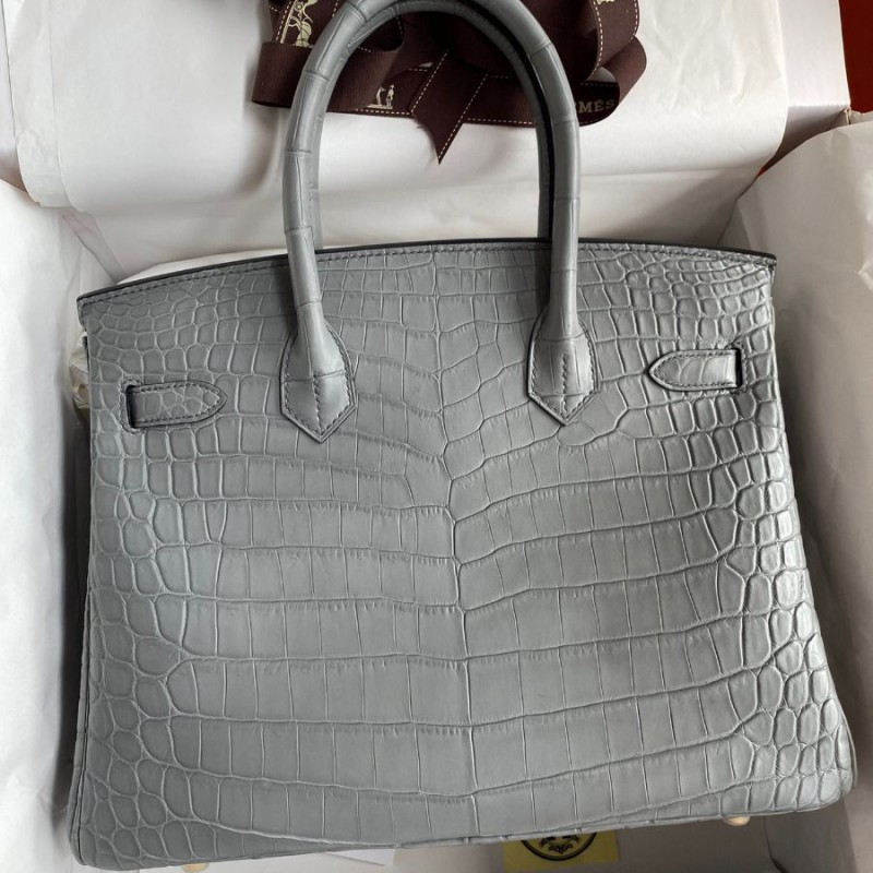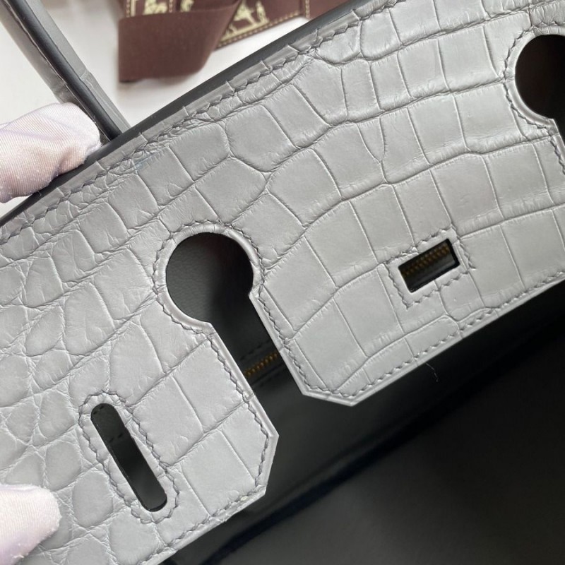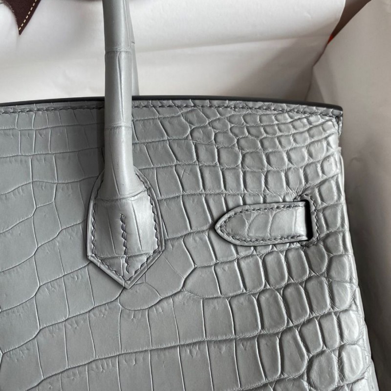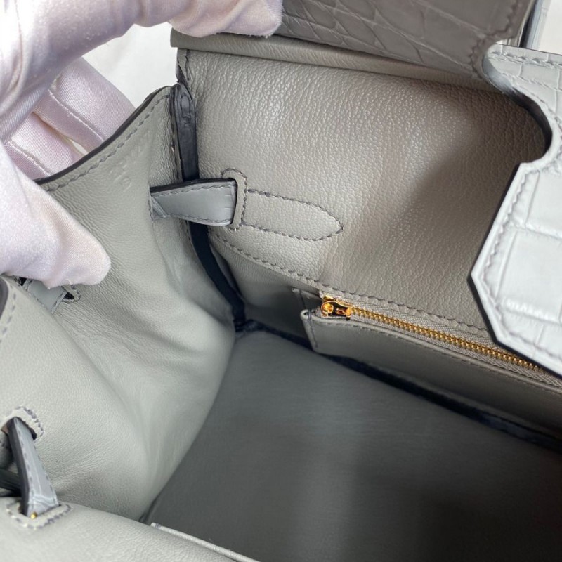 Hermes Replica Handbag Store 30 Handmade Bag In Etain Crocodile Niloticus Matte Skin