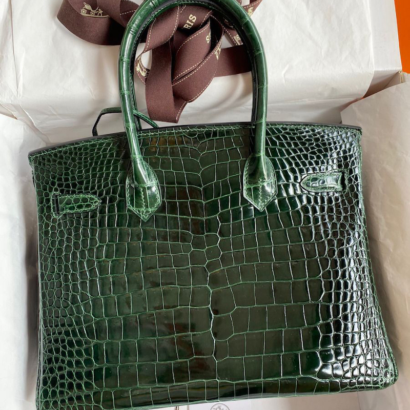 Reviews Over Hermes Replica Handbag Store 30 Handmade Bag In Green Crocodile Porosus Shiny Skin