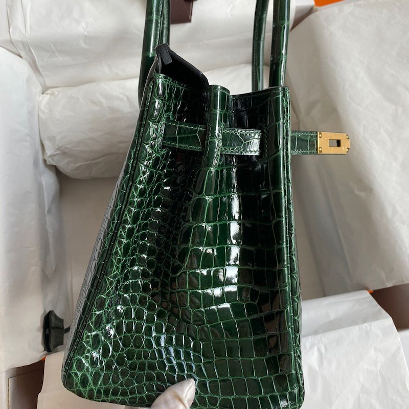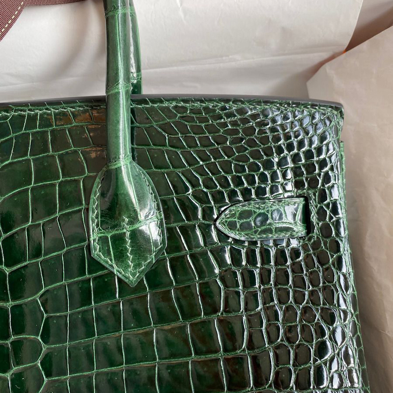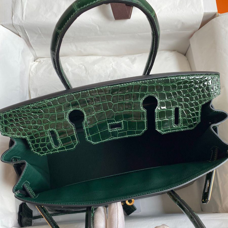 Hermes Replica Handbag Store 30 Handmade Bag In Green Crocodile Porosus Shiny Skin