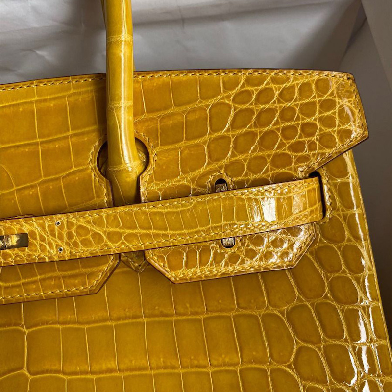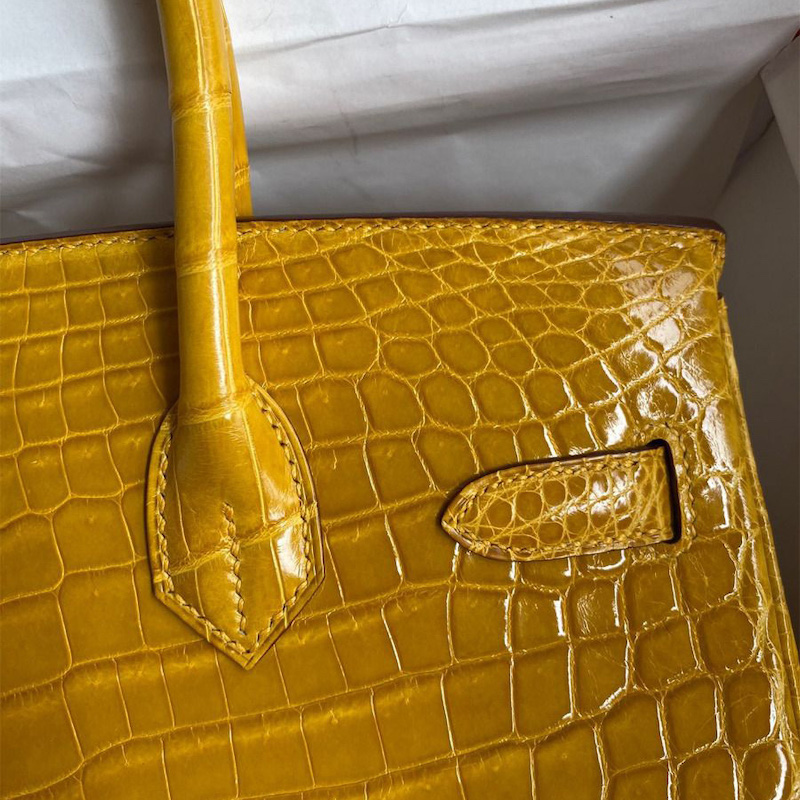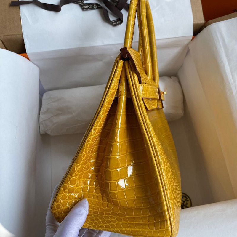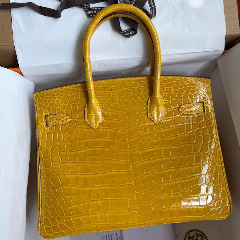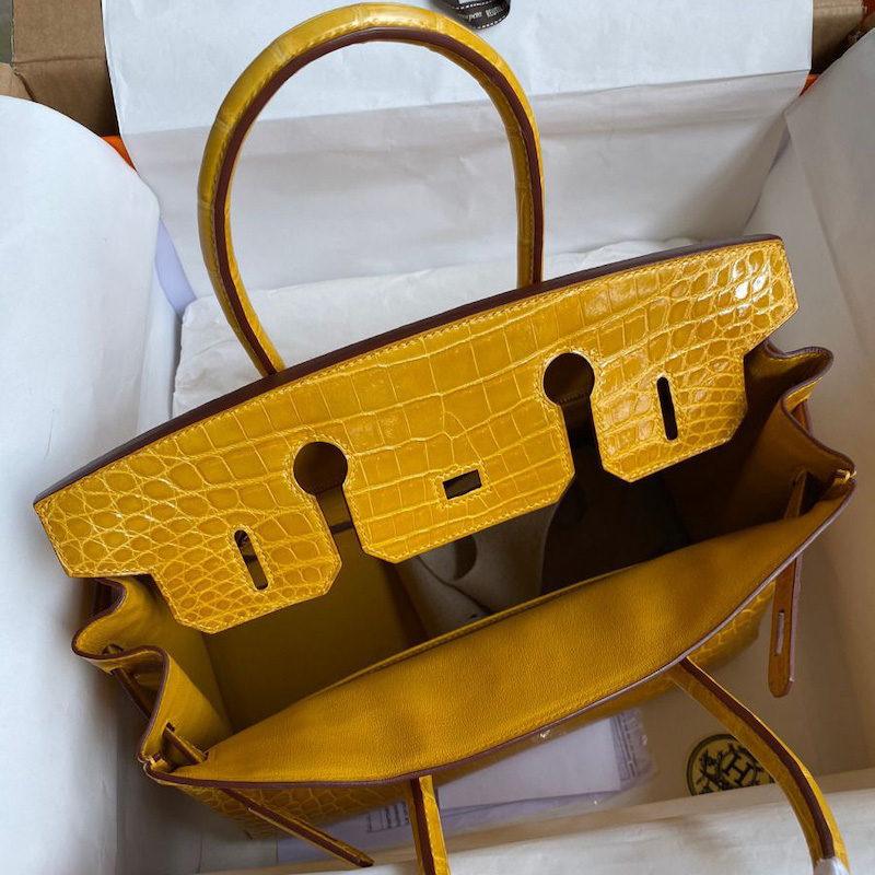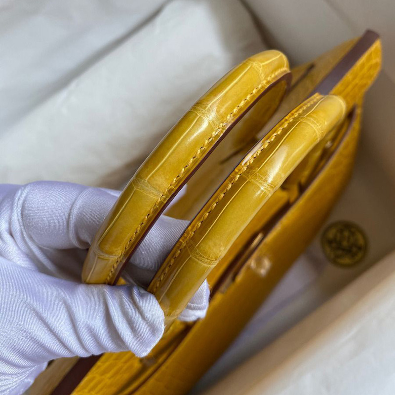 Hermes Replica Handbag Store 30 Handmade Bag In Jaune Ambre Crocodile Niloticus Shiny Skin