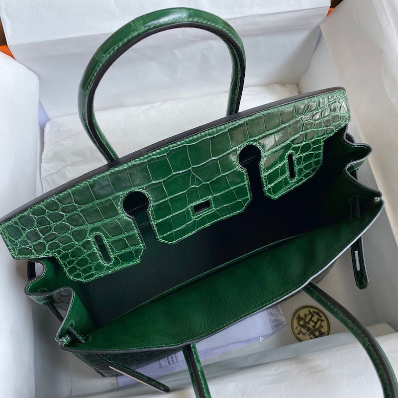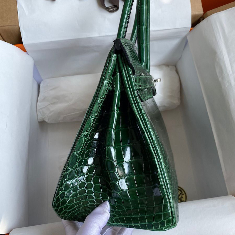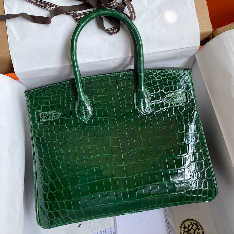 Hermes Replica Handbag Store 30 Handmade Bag In Malachite Crocodile Niloticus Shiny Skin
