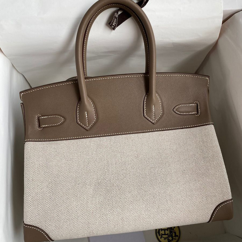 Reviews Over Hermes Replica Handbag Store 30 Handmade Bag In Toile & Tourterelle Swift Leather