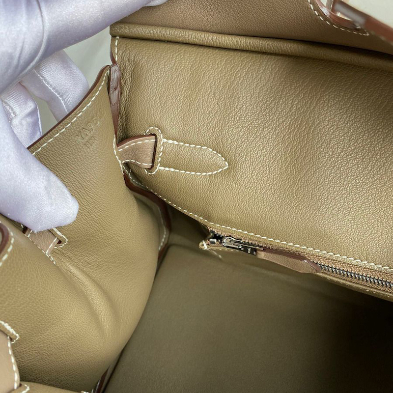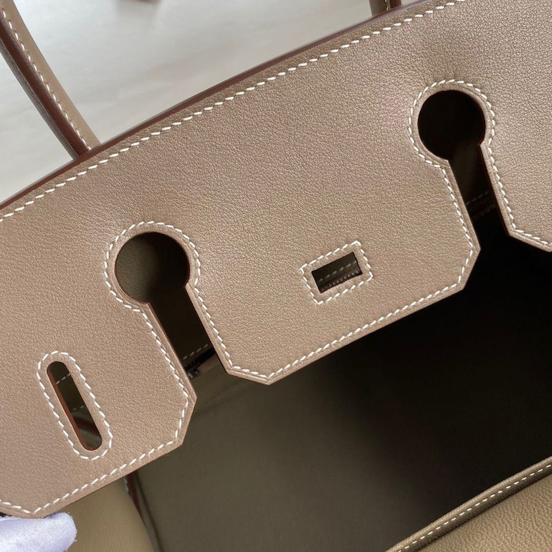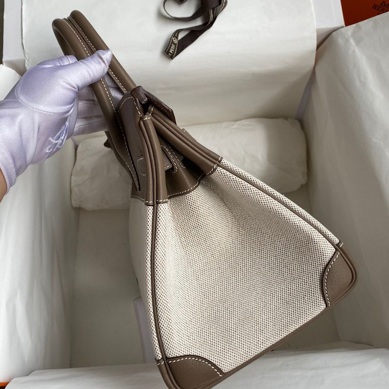 Hermes Replica Handbag Store 30 Handmade Bag In Toile & Tourterelle Swift Leather