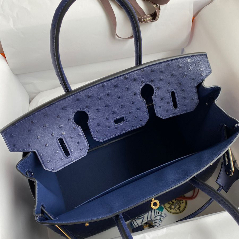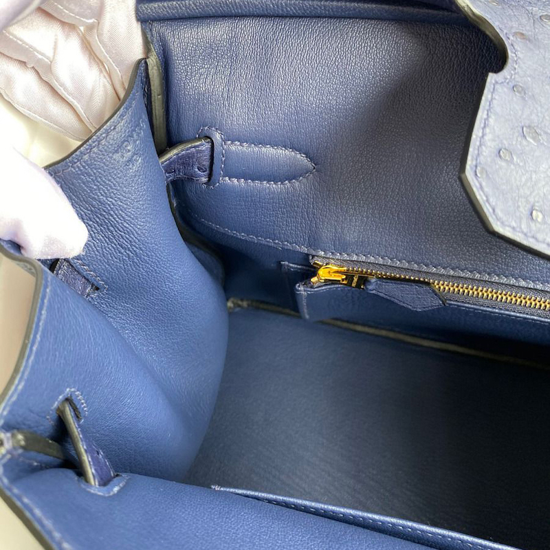 Hermes Replica Handbag Store 30 Retourne Handmade Bag In Blue Iris Ostrich Leather