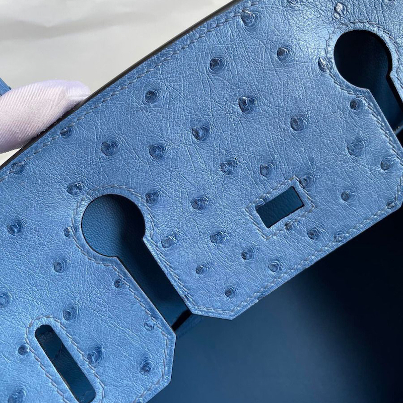 Hermes Replica Handbag Store 30 Retourne Handmade Bag In Blue Iris Ostrich Leather