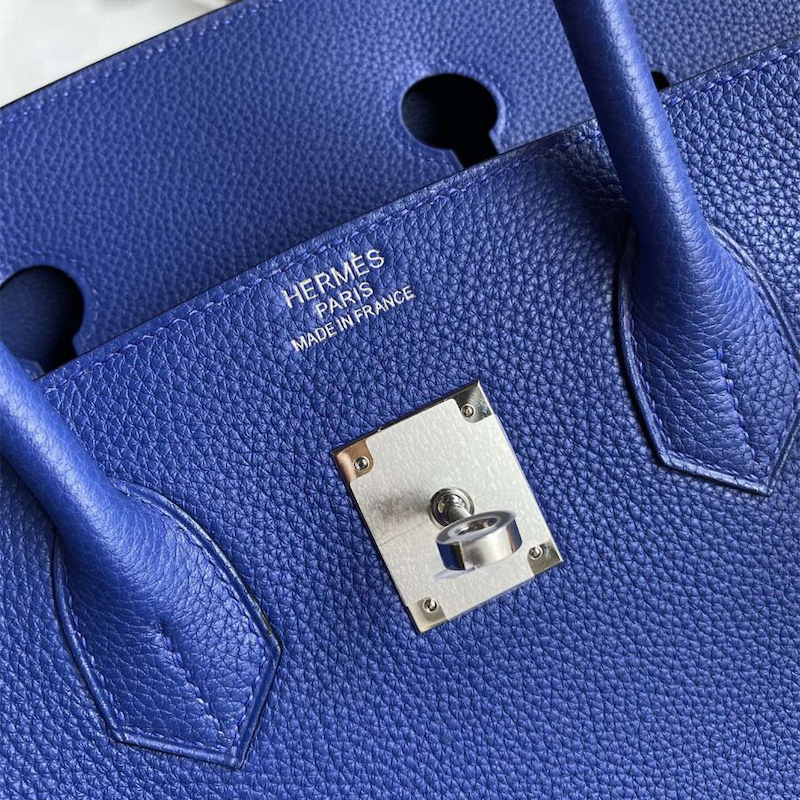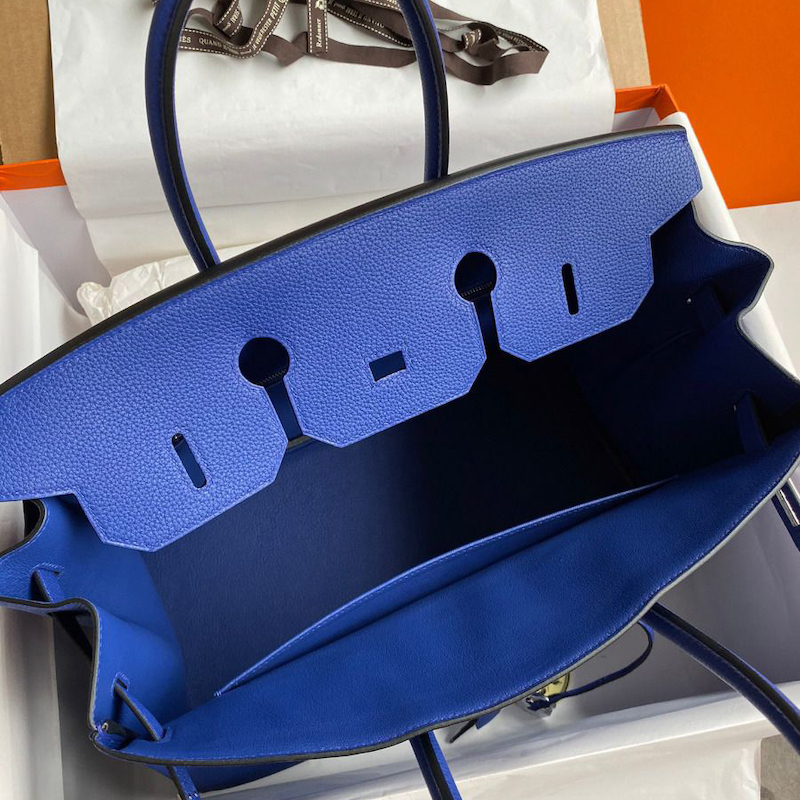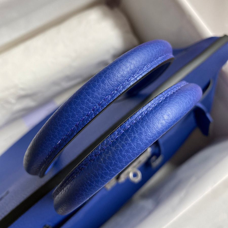 Reviews Over Hermes Replica Handbag Store 35CM Clemence Leather Blue Electric PHW