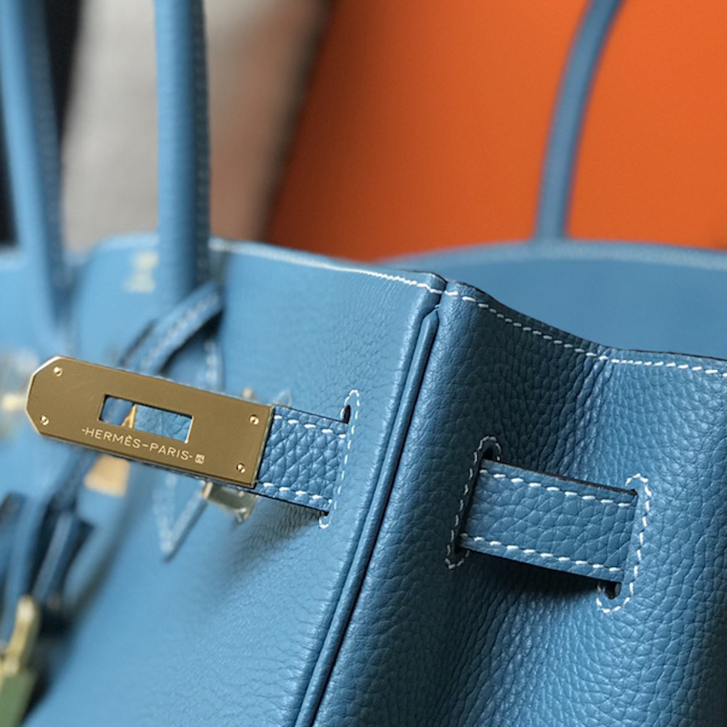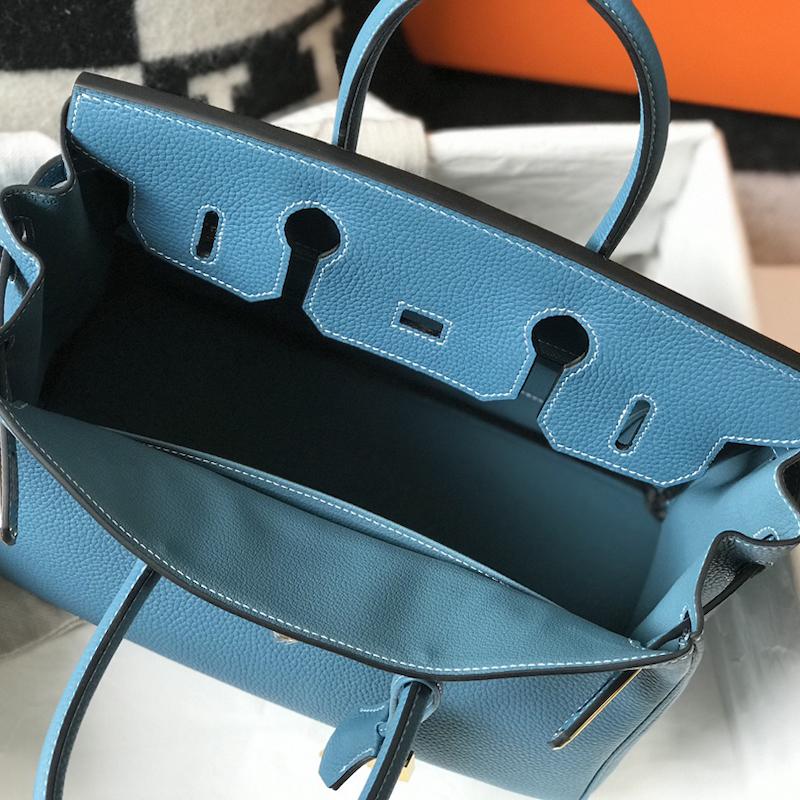 Reviews Over Hermes Replica Handbag Store 35CM Clemence Leather Blue Jean