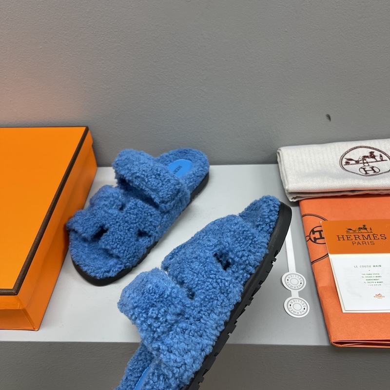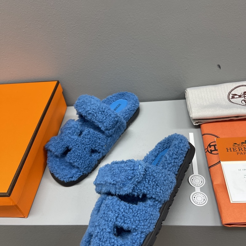 Hermes Chypre Sandal Shearling Blue