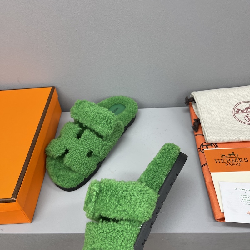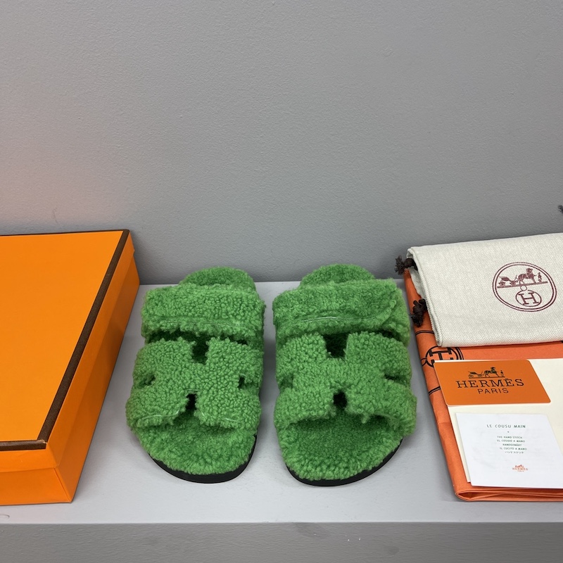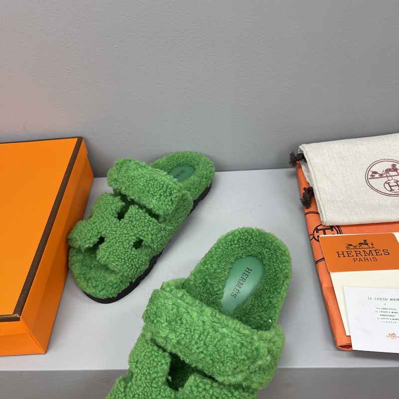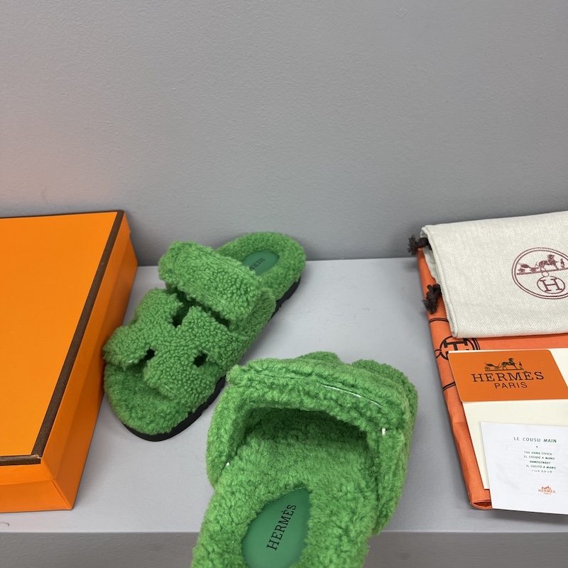 Hermes Chypre Sandal Shearling Green