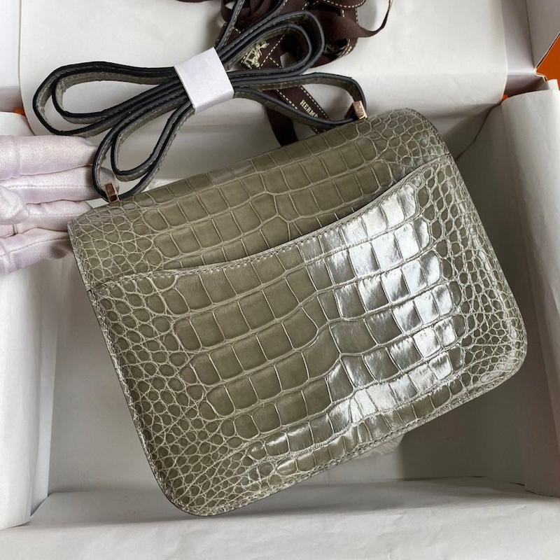 Reviews Over Hermes Constance 18 Handmade Bag In Grey Shiny Alligator Crocodile Leather