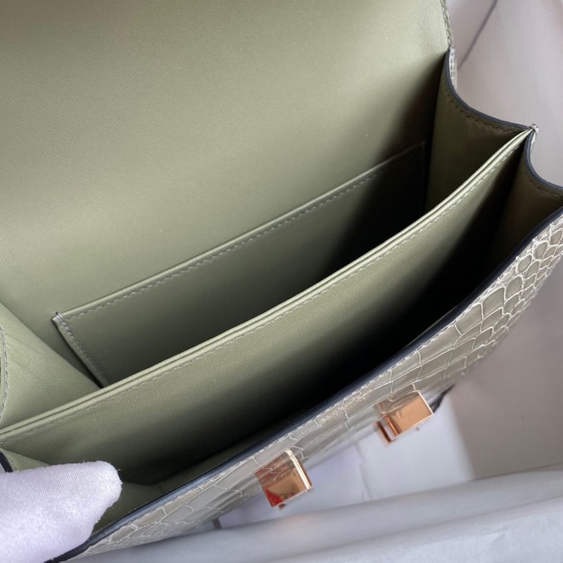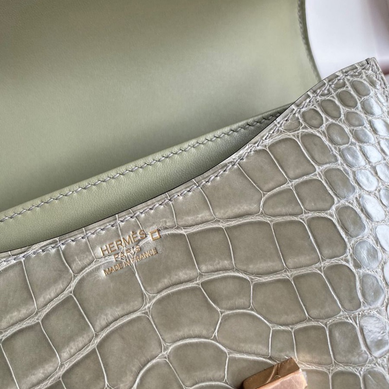 Hermes Constance 18 Handmade Bag In Grey Shiny Alligator Crocodile Leather