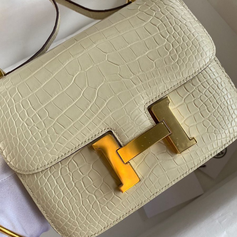 Hermes Constance 18 Handmade Bag In Vanille Matte Alligator Crocodile Leather
