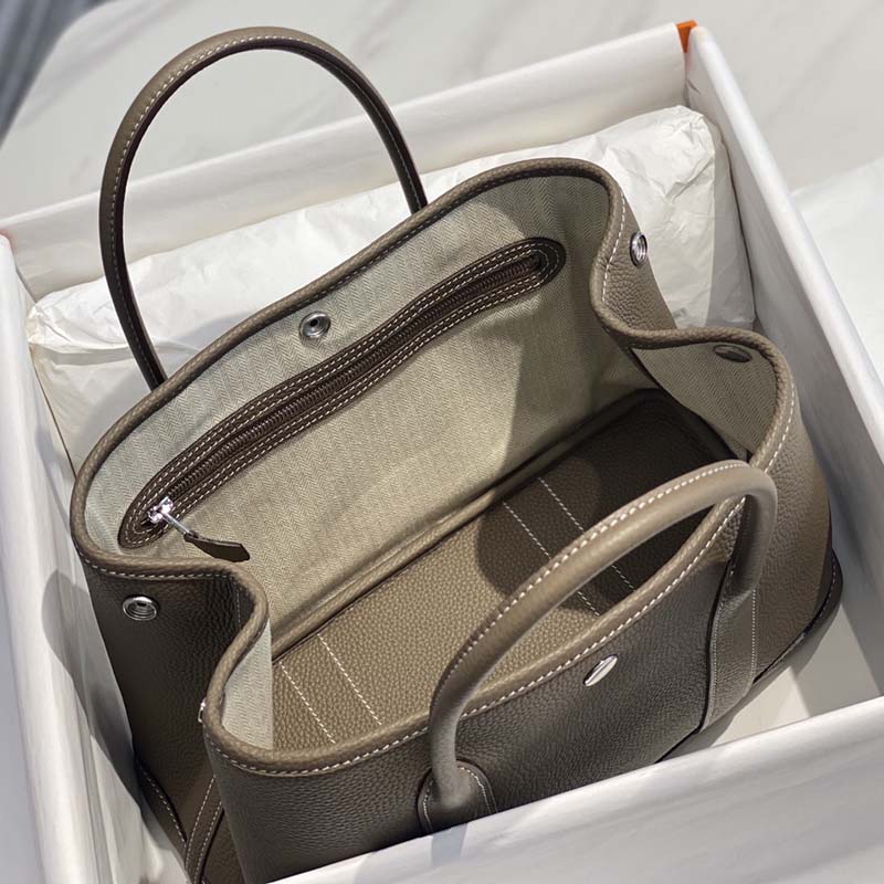 Hermes Garden Party Bag 30cm 36cm Clemence Leather Etoupe