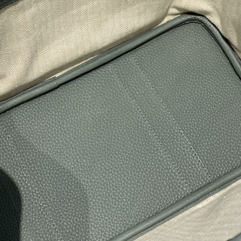 – Chevron canvas lining with leather base