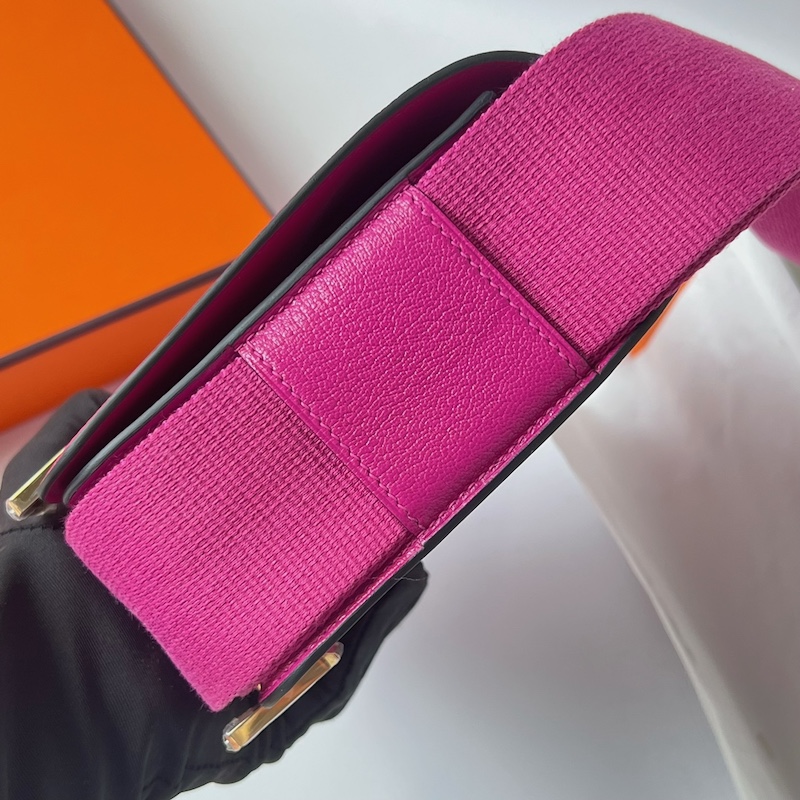 Hermes Geta Bag in Rose Pourpre Mysore Goatskin Leather GHW