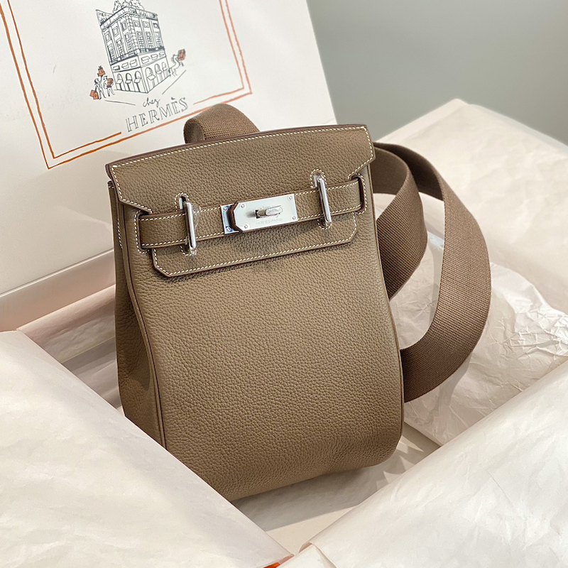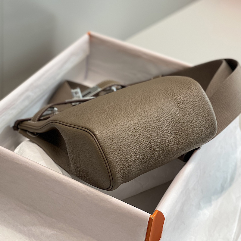 Hermes HAC a dos Backpack Clemence Leather Etoupe