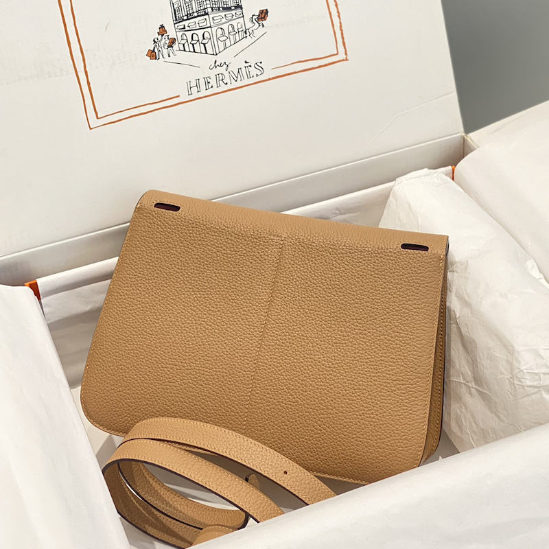 Hermes Halzan 25 Bag Clemence Leather Chai PHW
