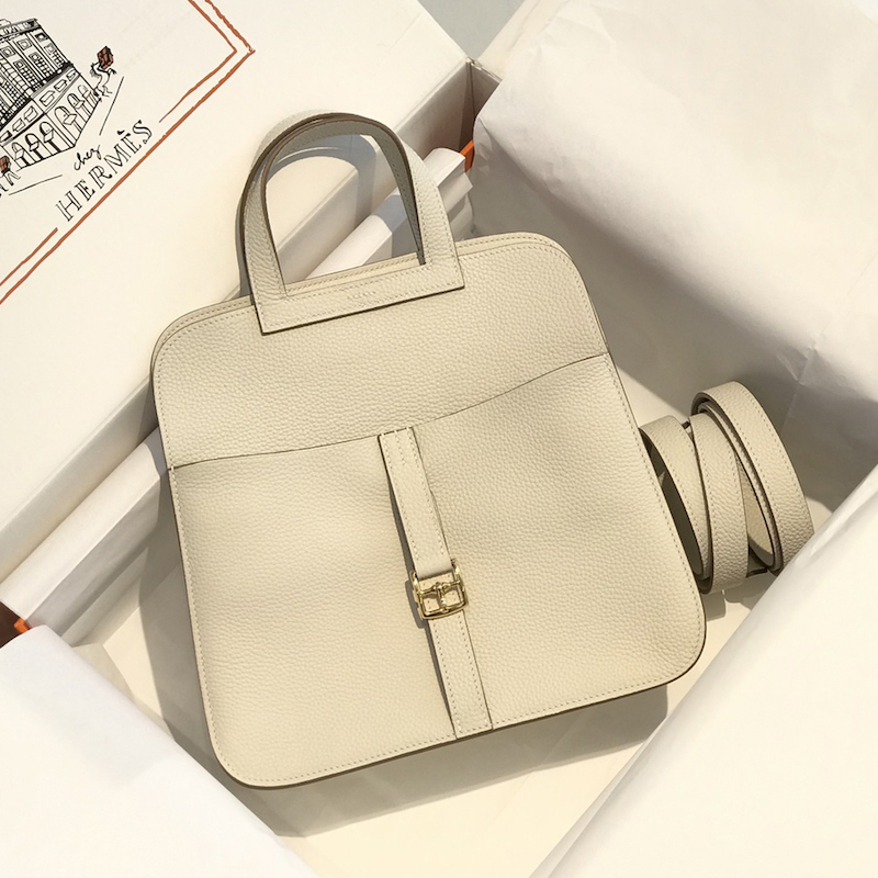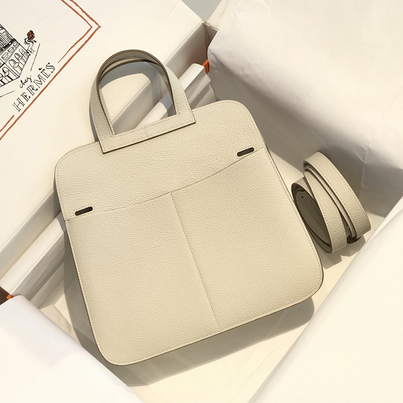 Reviews Over Hermes Halzan 25 Bag Clemence Leather Craie GHW