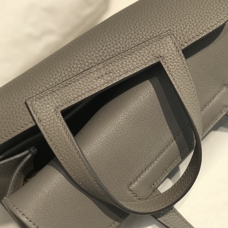Reviews Over Hermes Halzan 25 Bag Clemence Leather Etain GHW
