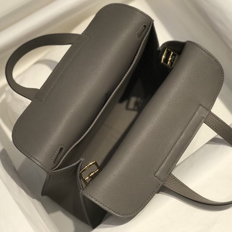Hermes Halzan 25 Bag Clemence Leather Grey GHW