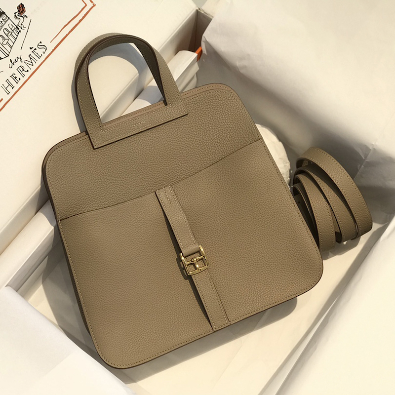 Hermes Halzan 25 Bag Clemence Leather Etain GHW