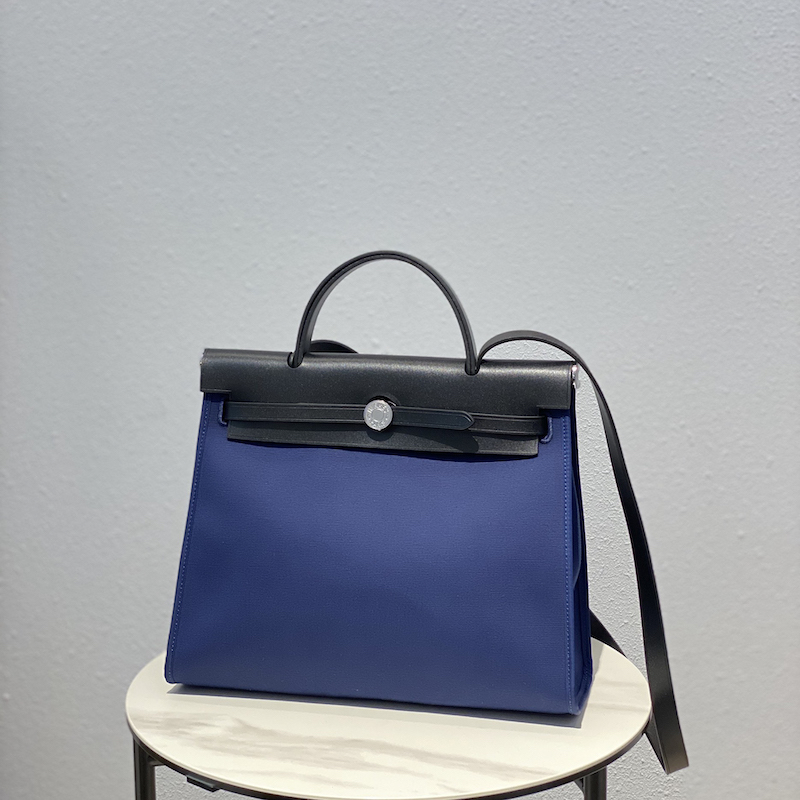 Hermes Herbag Zip 31 Bag in Deep Blue / Black