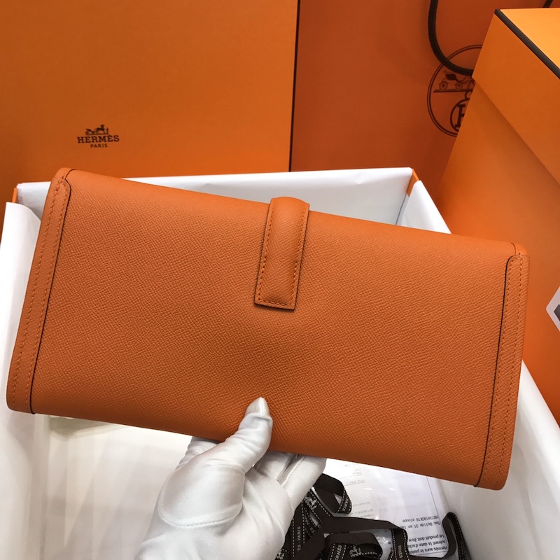 Hermes Jige Elan 29 Clutch In Orange Epsom Leather