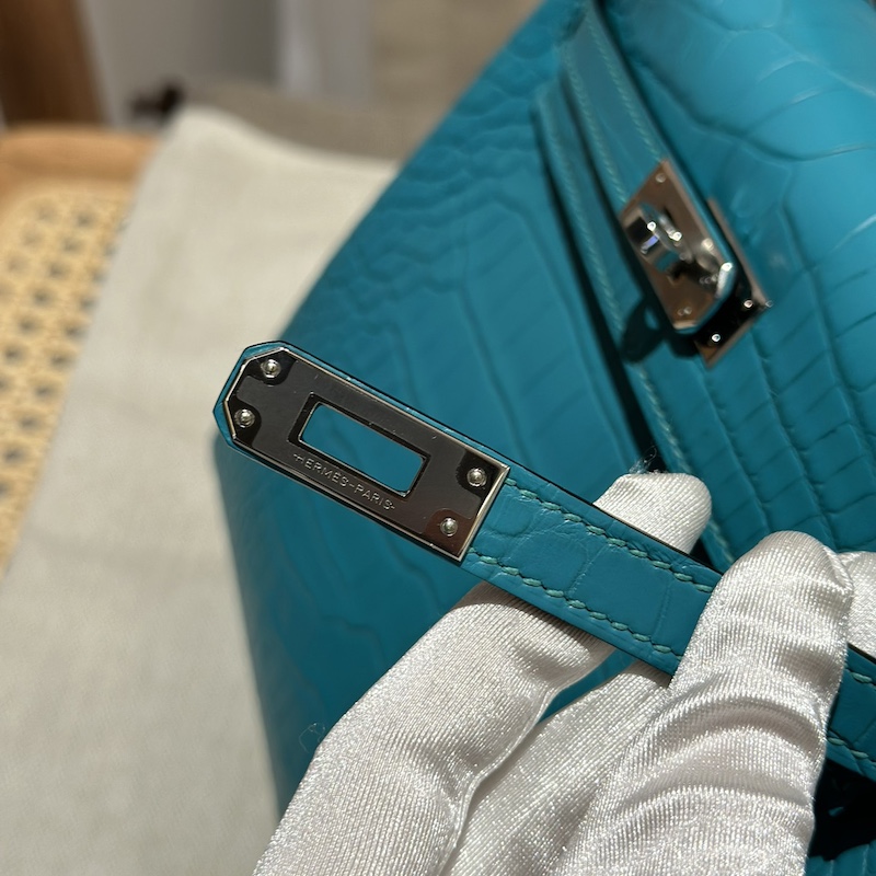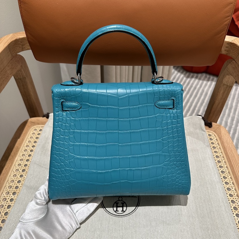 Reviews Over Hermes Kelly 25 Handmade Bag In Bleu Paon Crocodile Niloticus Matte Skin