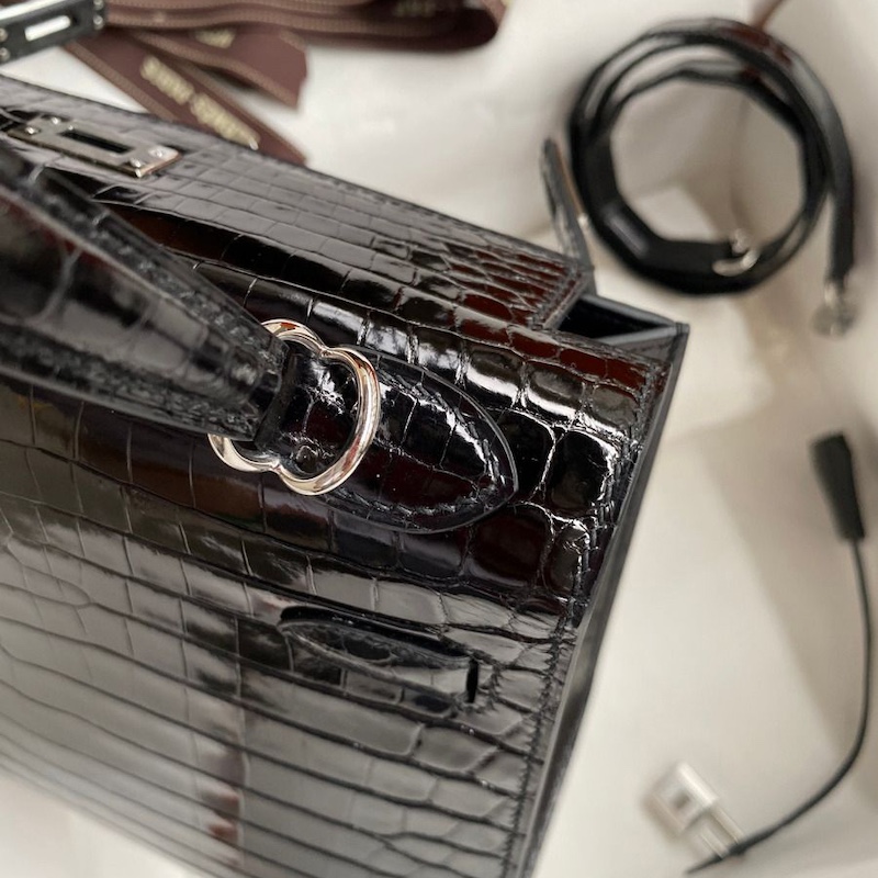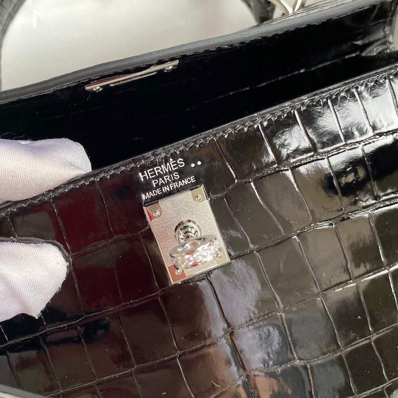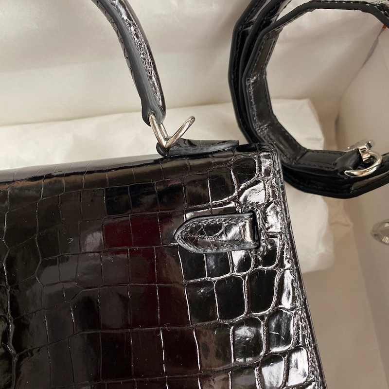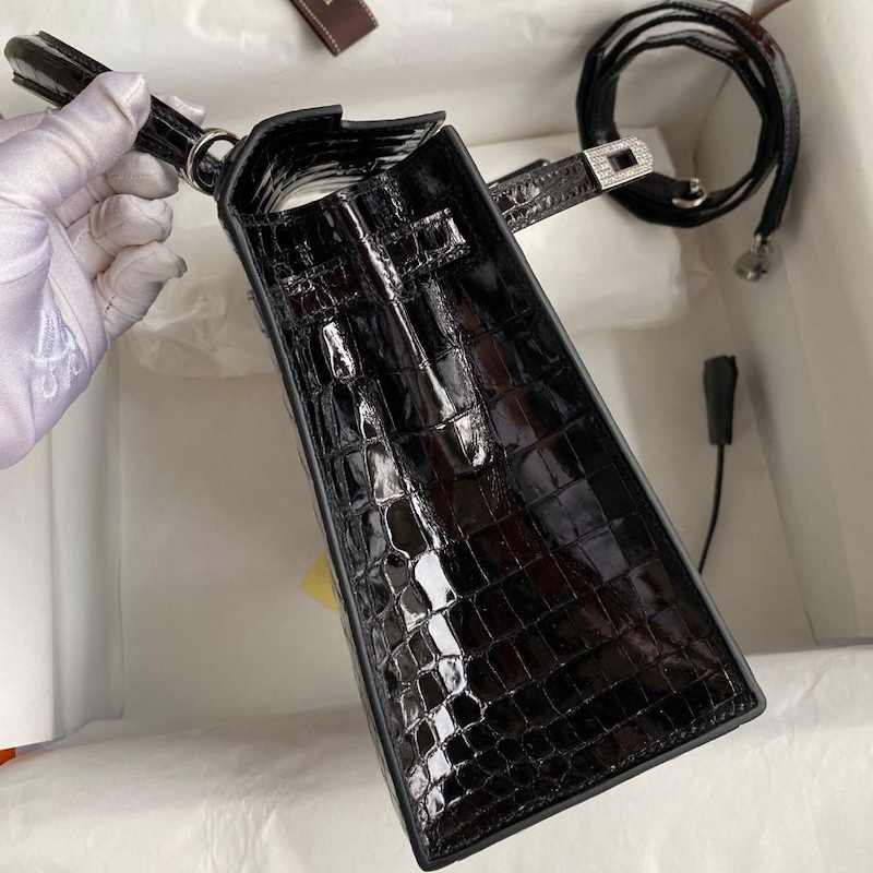 Reviews Over Hermes Kelly 25 Diamond Bag In Black Crocodile Niloticus Shiny Skin