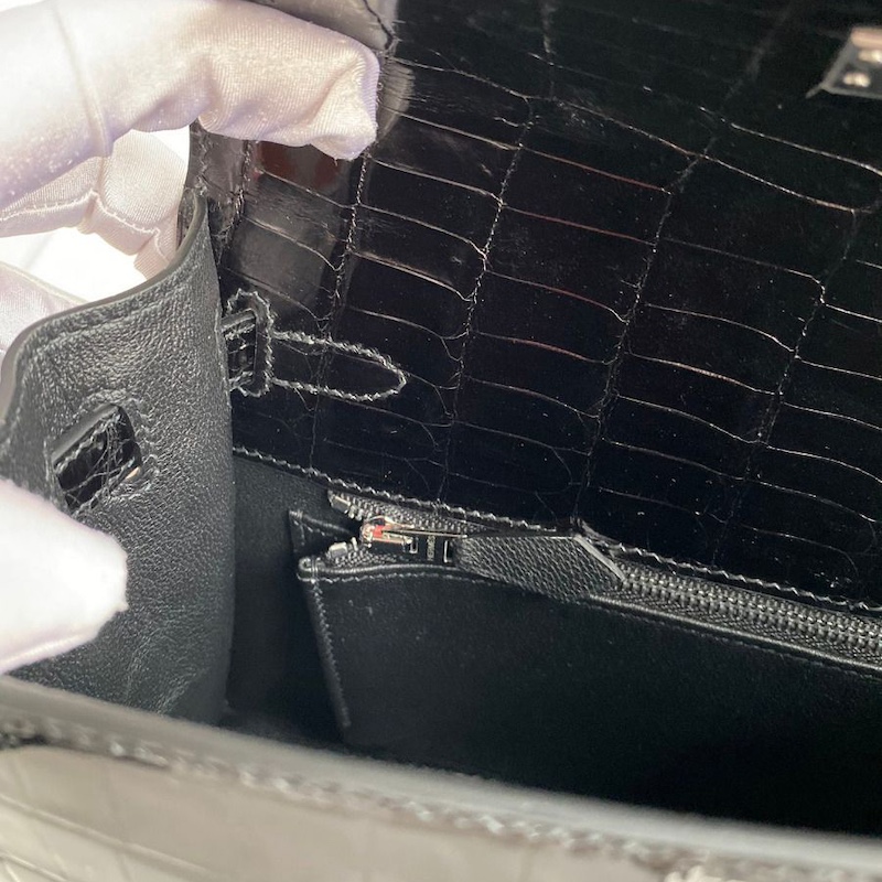 Hermes Kelly 25 Handmade Bag In Black Crocodile Niloticus Matte Skin