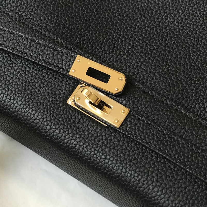 Hermes Kelly 25cm Bag in Clemence Leather Black GHW