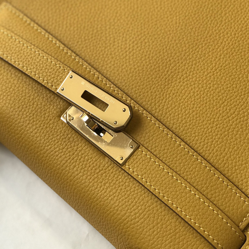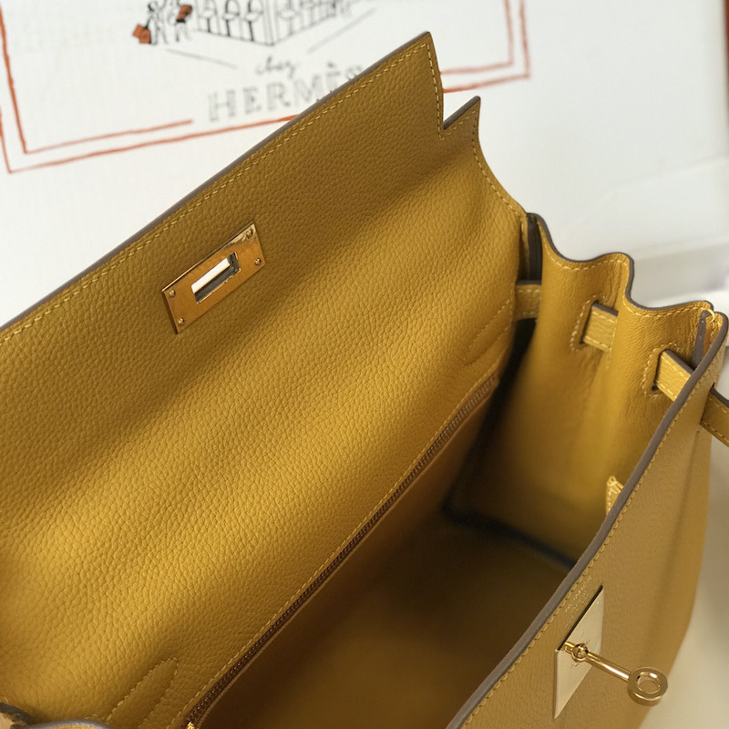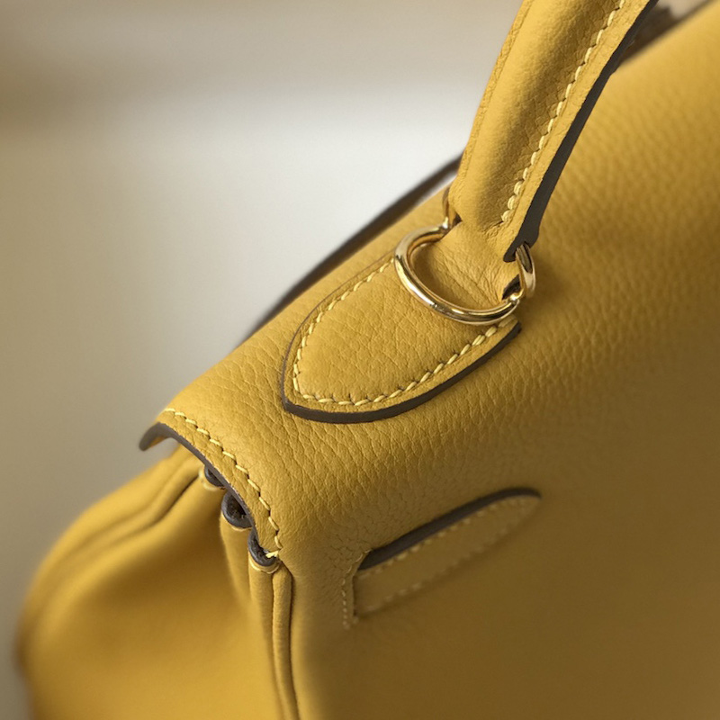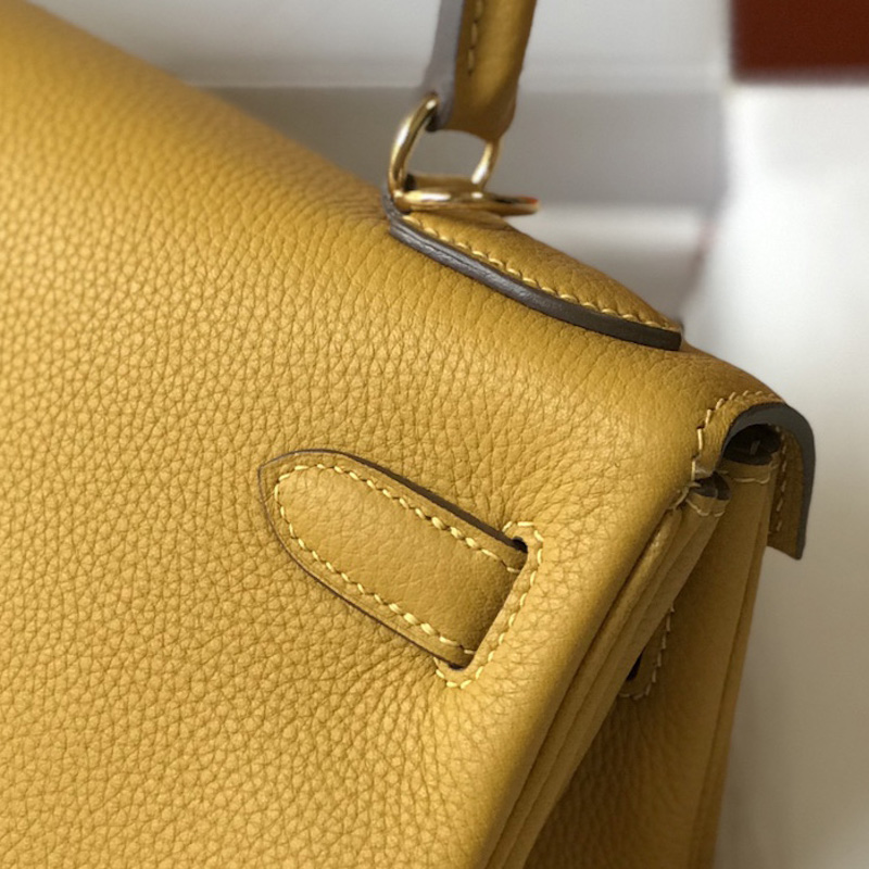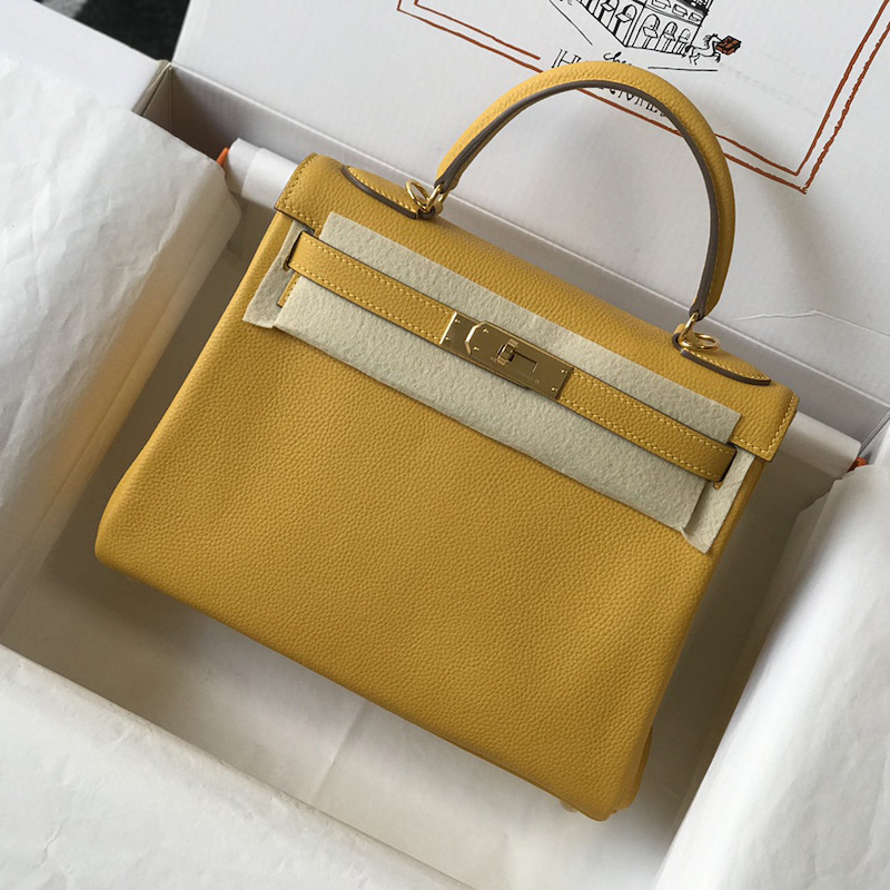Reviews Over Hermes Kelly 25cm Bag in Clemence Leather Jaune Amber GHW